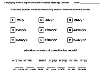 Algebra simplifying radicals with variables puzzle + homework distance learning.