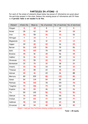 Subatomic particles and isotopes worksheet.